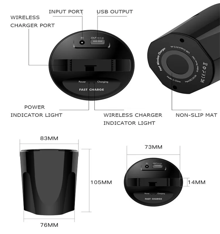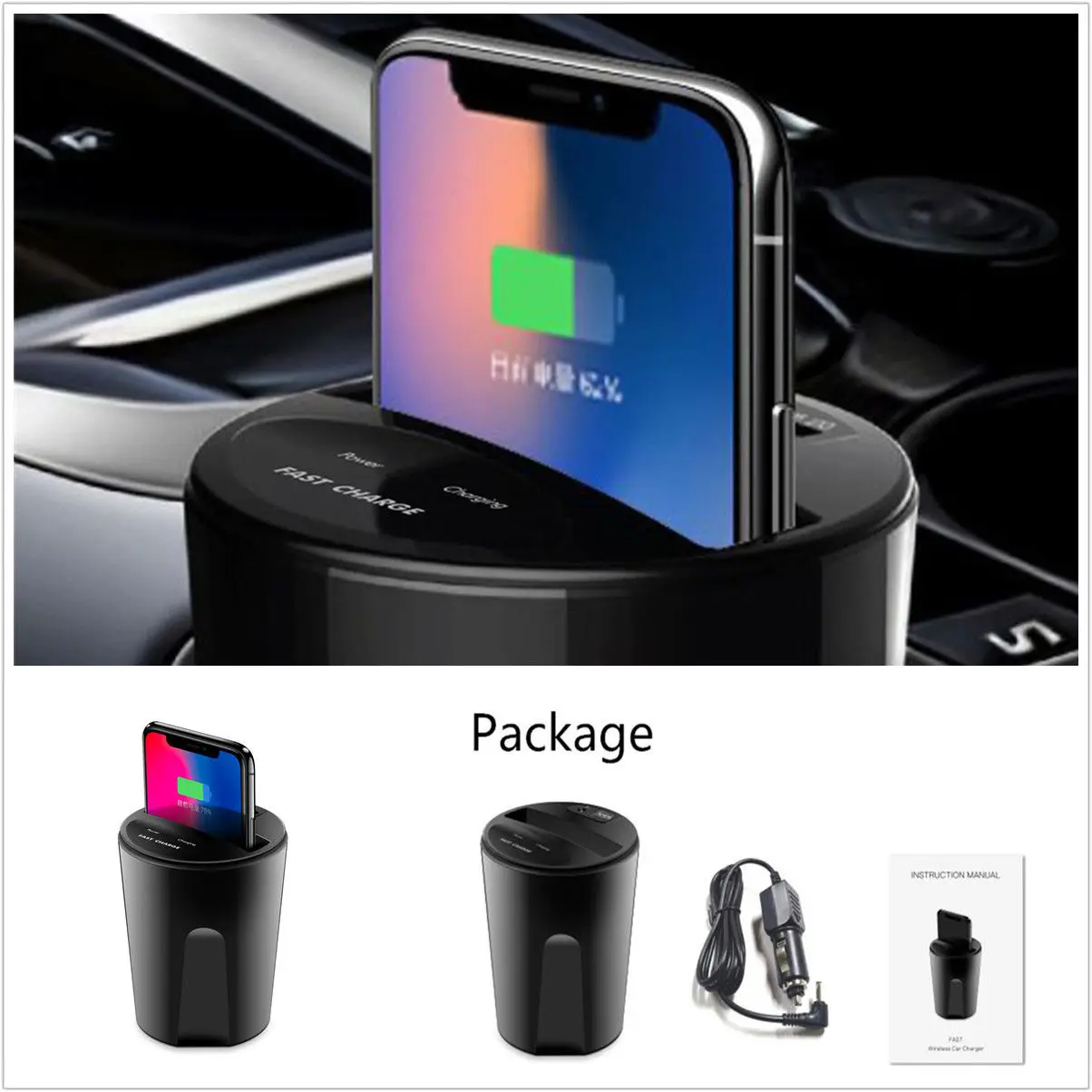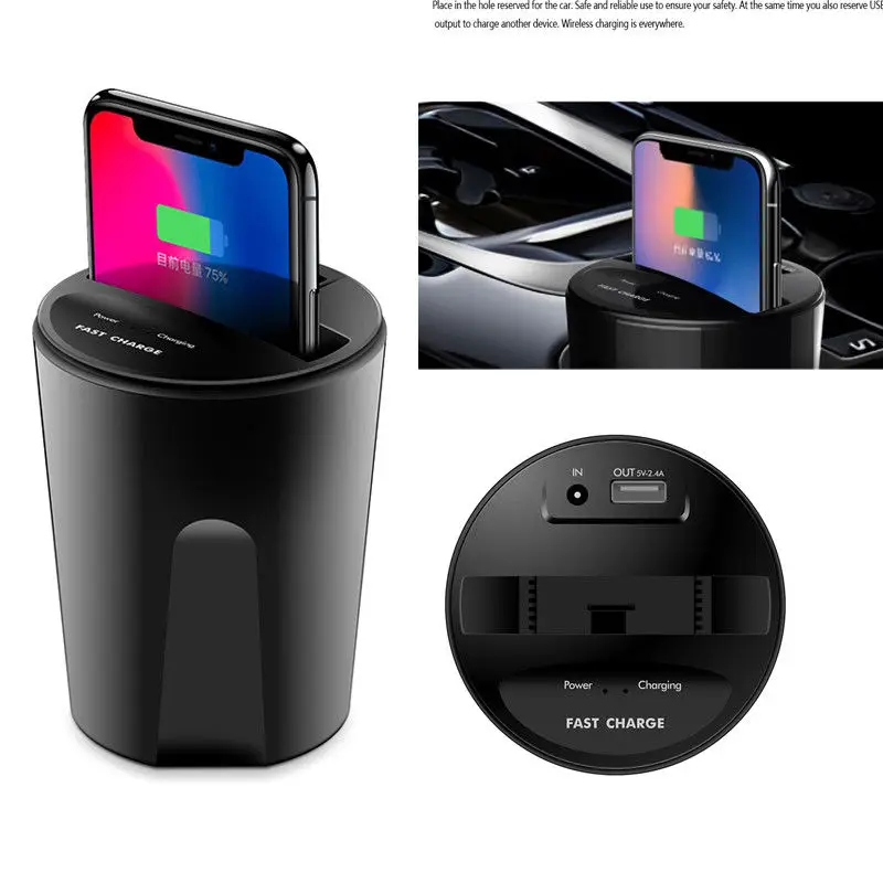 USB Charging Holder Qi Wireless Fast Car Auto Charger Charging Cup Holder
