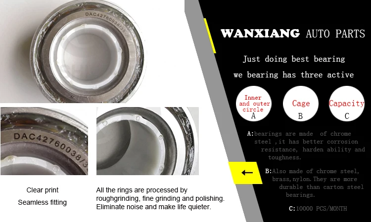 Jiaxing Wanxiang Auto Parts Co., Ltd. was founded in 2006. Specializing in the production of Auto Bearings, including wheel bearings, wheel hub bearings, transmission bearings. Products of high quality, fashionable, widely used in a variety of architecture, not only has the broad masses of the domestic sales market, but also exported to Europe and the United States.