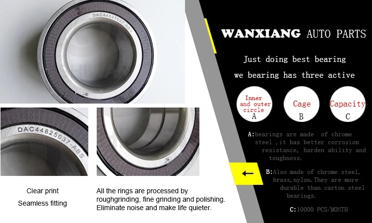 | Product Name | 100% Full Inspection 1311506080 Vkba3423 No Minimum DAC44825037 Plastic Wheel With Bearing Factory From China 1311506080 VKBA3423 44BWD02 GB40246S02 IR8618 |