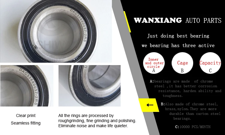 Jiaxing Wanxiang Auto Parts Co., Ltd. Was Founded In 2006. Specializing In The Production Of Auto Bearings, Including Wheel Bearings, Wheel Hub Bearings, Transmission Bearings. Products Of High Quality, Fashionable, Widely Used In A Variety Of Architecture, Not Only Has The Broad Masses Of The Domestic Sales Market, But Also Exported To Europe And The United States.