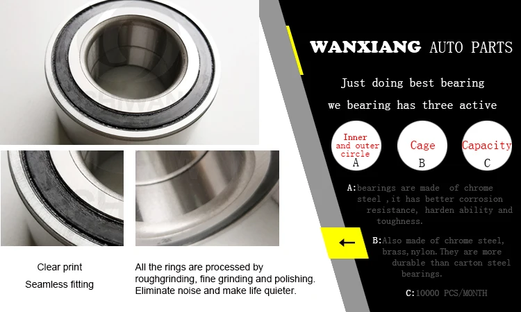 Jiaxing Wanxiang Auto Parts Co., Ltd. Was Founded In 2006. Specializing In The Production Of Auto Bearings, Including Wheel Bearings, Wheel Hub Bearings, Transmission Bearings. Products Of High Quality, Fashionable, Widely Used In A Variety Of Architecture, Not Only Has The Broad Masses Of The Domestic Sales Market, But Also Exported To Europe And The United States.