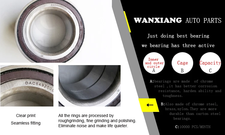 Jiaxing Wanxiang Auto Parts Co., Ltd. Was Founded In 2006. Specializing In The Production Of Auto Bearings, Including Wheel Bearings, Wheel Hub Bearings, Transmission Bearings. Products Of High Quality, Fashionable, Widely Used In A Variety Of Architecture, Not Only Has The Broad Masses Of The Domestic Sales Market, But Also Exported To Europe And The United States.