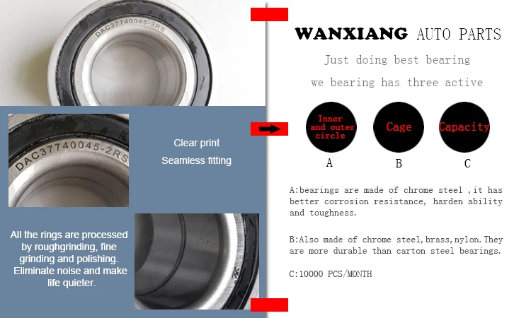 Jiaxing Wanxiang Auto Parts Co., Ltd. was founded in 2006. Specializing in the production of Auto Bearings, including wheel bearings, wheel hub bearings, transmission bearings. Products of high quality, fashionable, widely used in a variety of architecture, not only has the broad masses of the domestic sales market, but also exported to Europe and the United States.