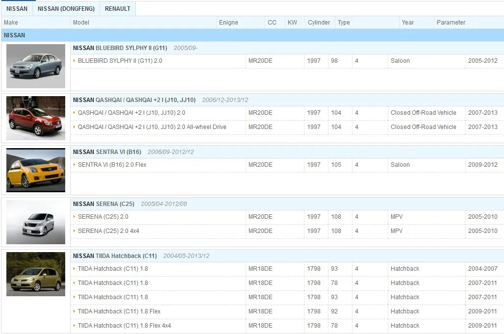 | Engine model | MR20DE MR25DE |