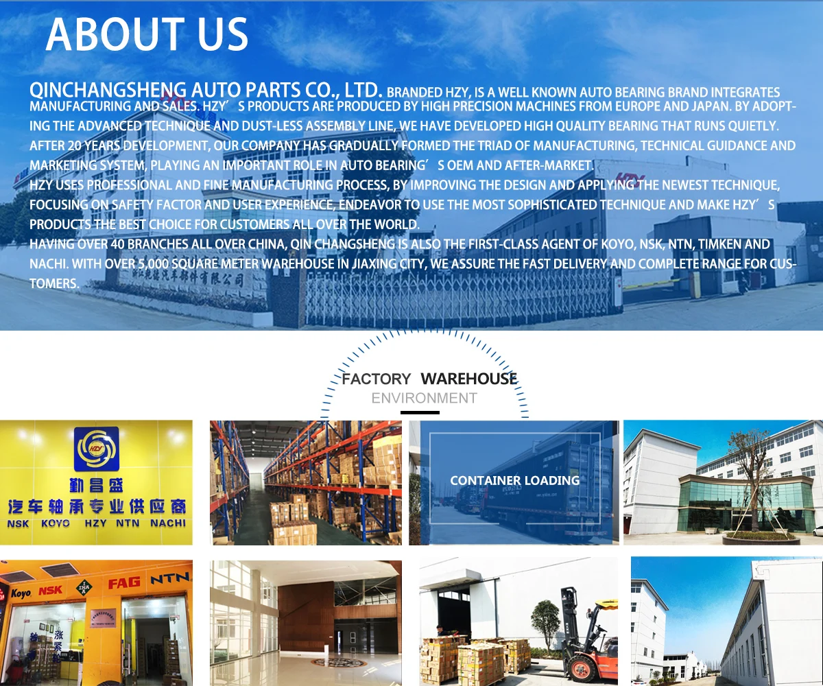 Established in 1996, Qin Changsheng Auto Parts Co. LTD is a professional manufacturer and exporter concerned with design, developement and production of automative parts. We are located in Jiashan economic development zone, Zhejiang province, a port city of China, with covenient transportation access. With advanced manufacturing facilities and excellent management staff, our products are equivalent to the world leading brand bearings. All of our products comply with international quality standards and are greatly appreciated in a variety of different markets througout the world. Now, we have already set up 32 directly-managed stores across all the provicial capitals of China. Besides, We have established long-term, stable and good business relationships with many manufacturers and wholesalers from Middle East,Russia,Japan and Middle East Southeast Asian countries. Your visit and cooperation will be warmly welcomed.