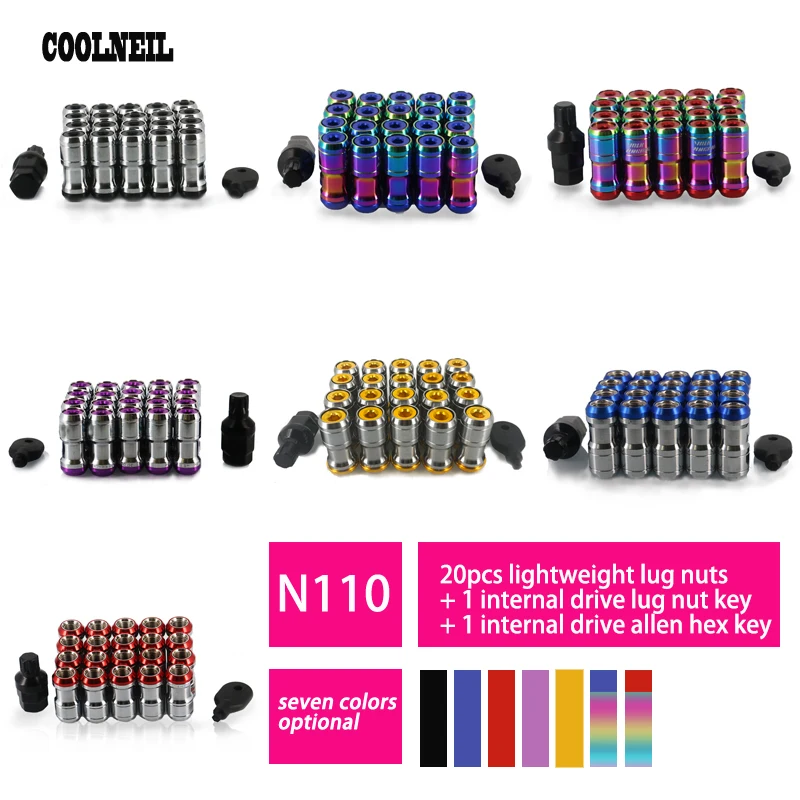 -Includes: 20pcs lightweight lug nuts with 1 internal drive lug nut key and 1 internal drive allen hex key