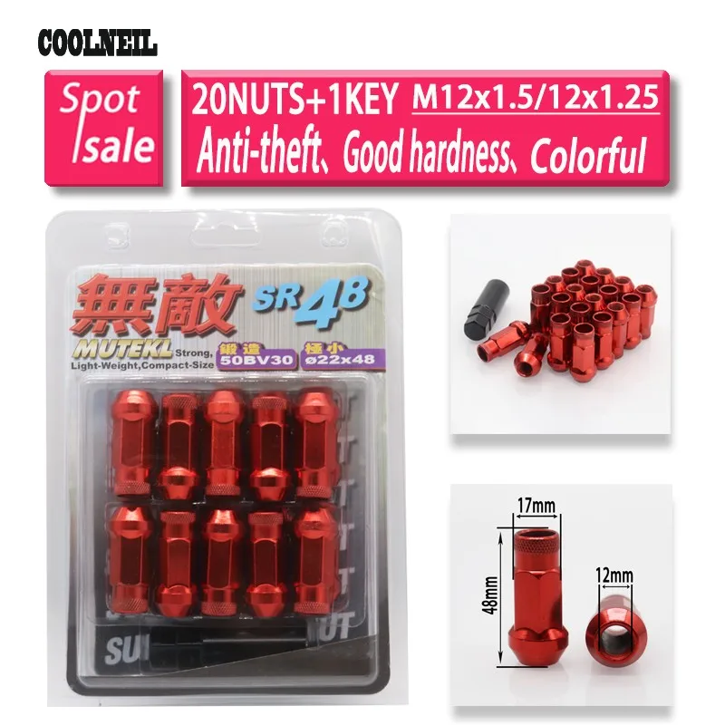 Racing Wheel Nut 12x1.25/1.5mm Length 48mm Lug LockinWheel Lock Nut