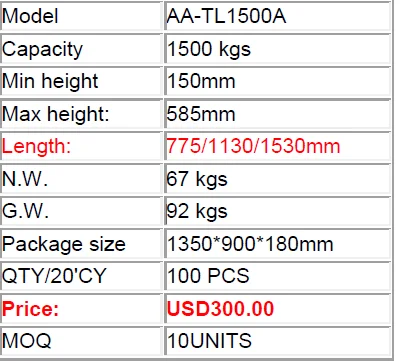 AA4C 1500 kgs Adjustabale Mini Tilting Car Lift AA-TL1500A