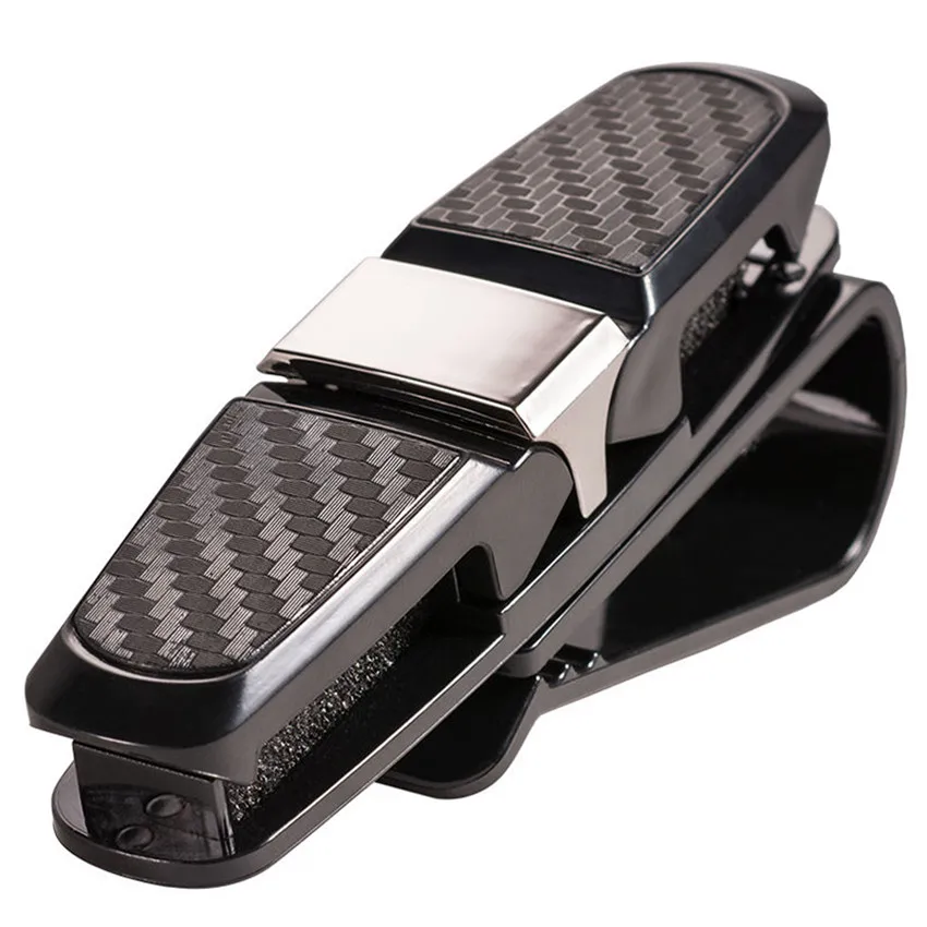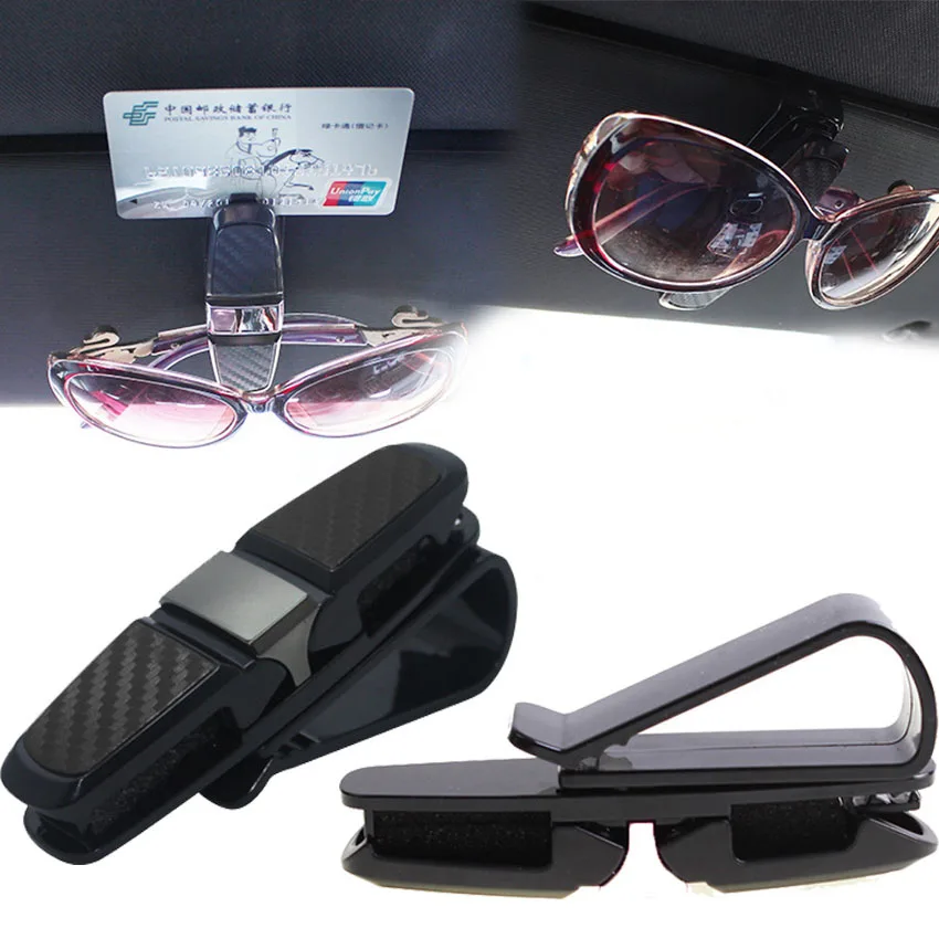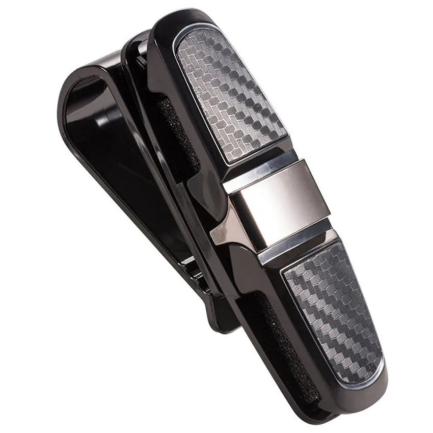 Universal Carbon Fiber Black Car Auto Sun Visor Glasses Sunglasses Card Ticket Holder Clip