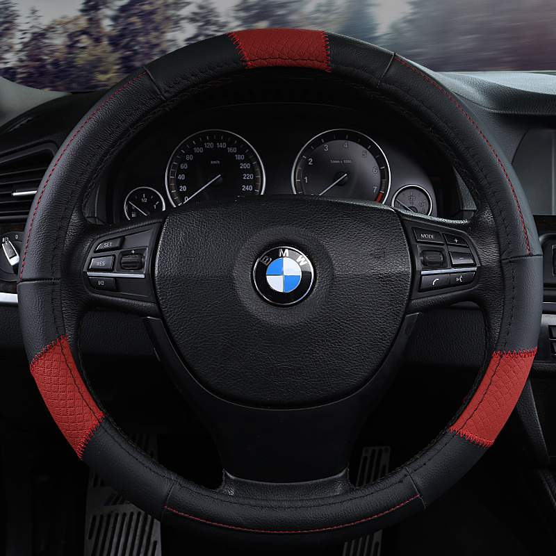 universal size rubber anti-skip genuine leather with PVC PU leather steering wheel cover 38-40cm
