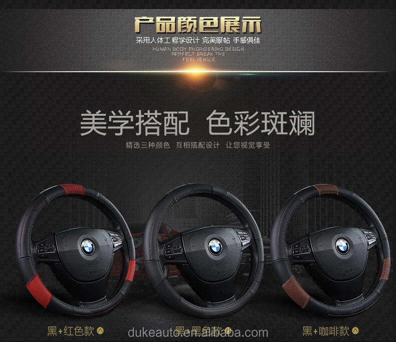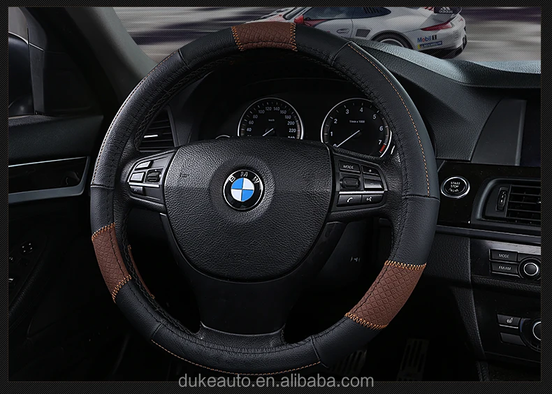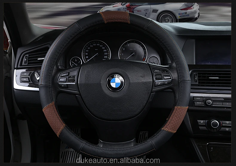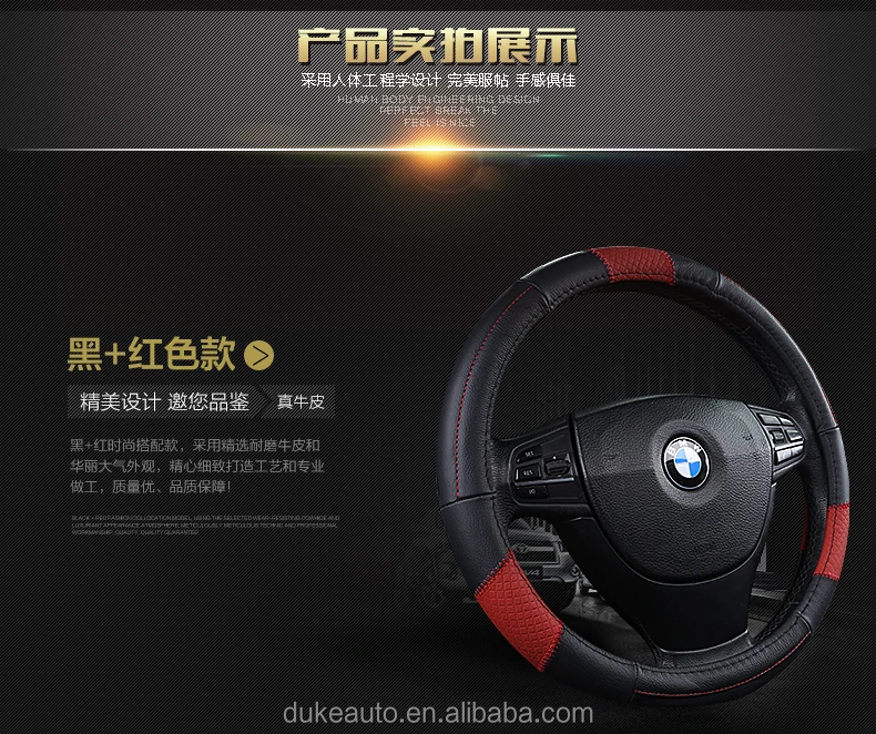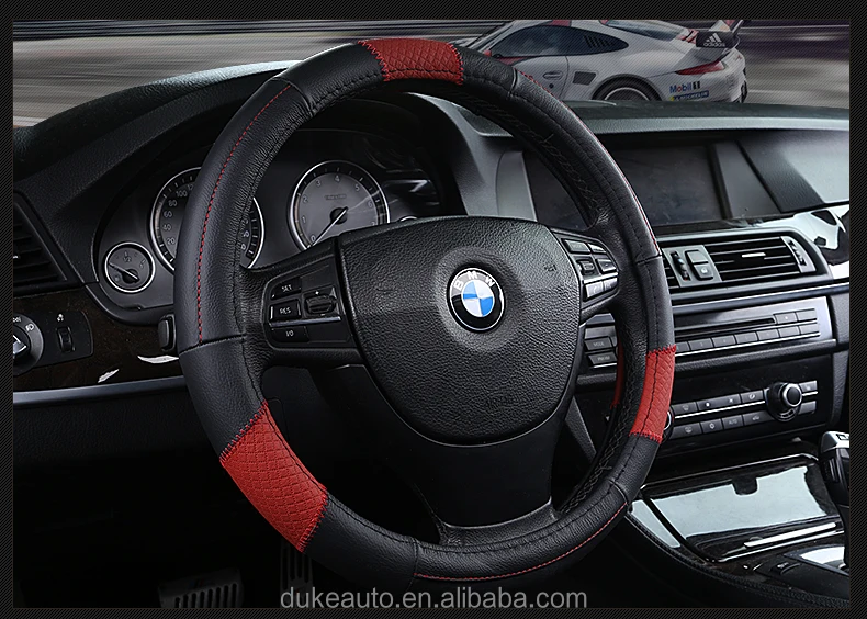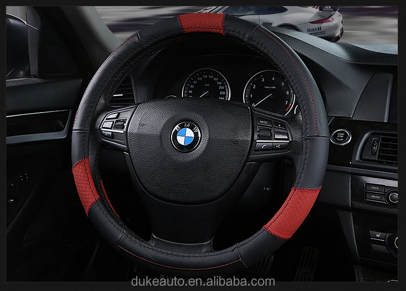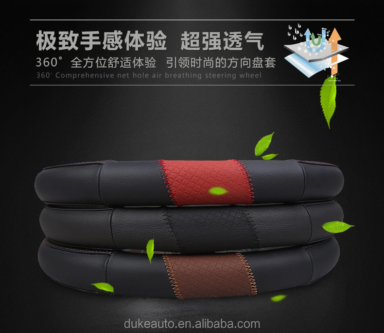 Your location:Home > Taizhou Duke Auto Accessories Co., Ltd. > universal size rubber anti-skip genuine leather with PVC PU leather steering wheel cover 38-40cm