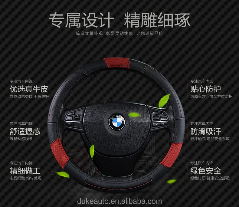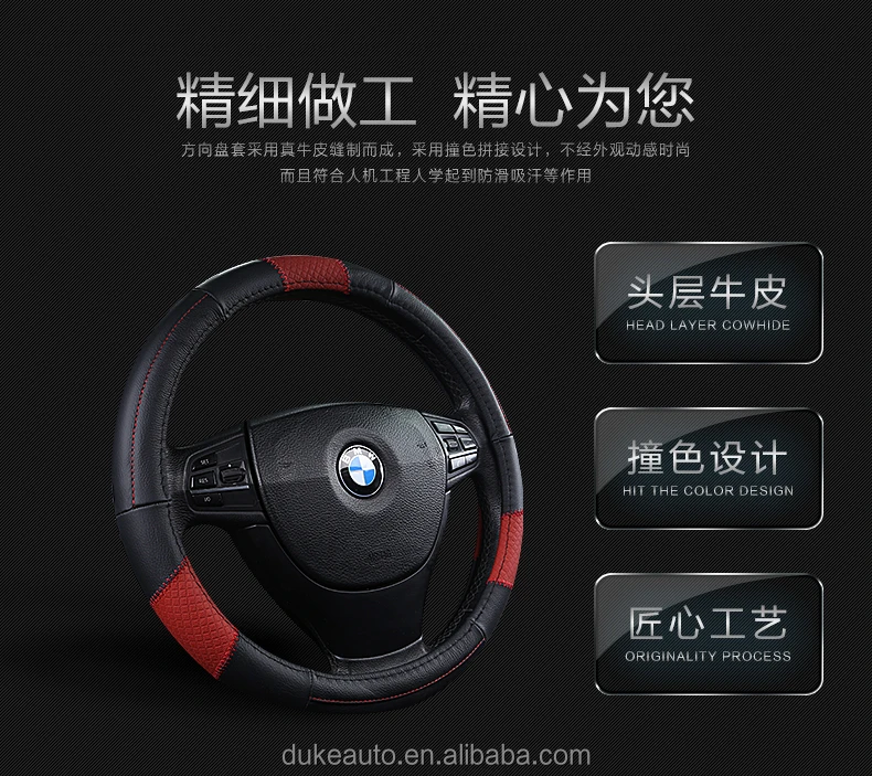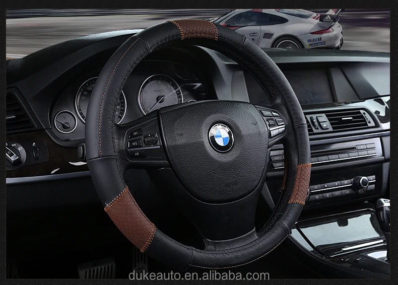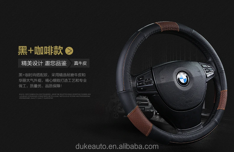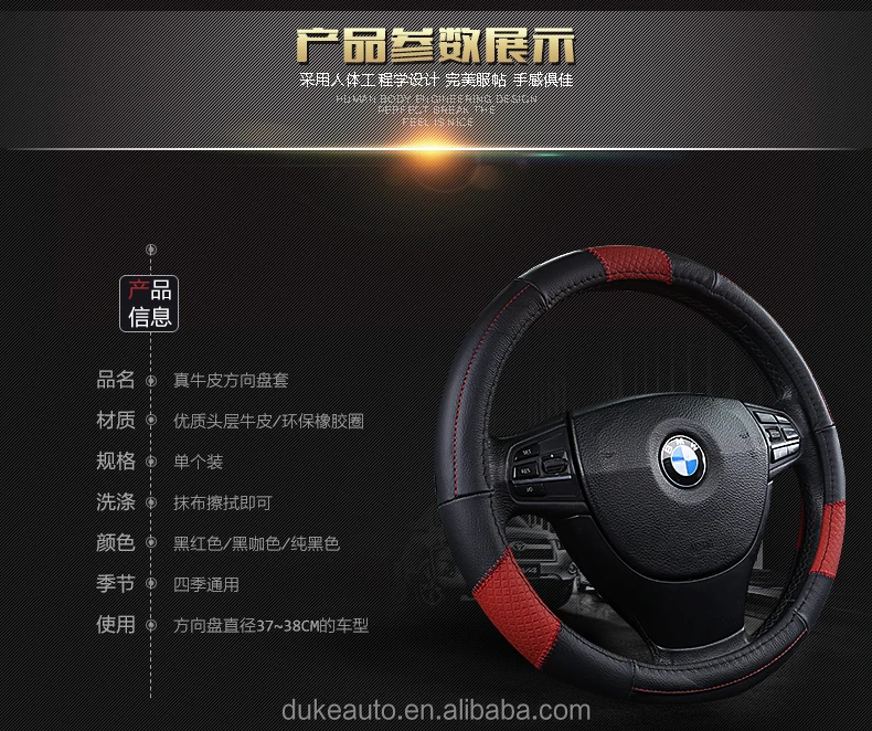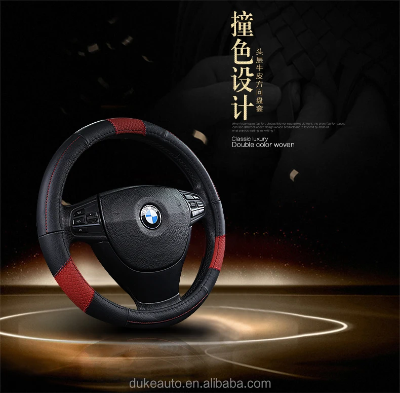 Your location:Home > Taizhou Duke Auto Accessories Co., Ltd. > universal size rubber anti-skip genuine leather with PVC PU leather steering wheel cover 38-40cm