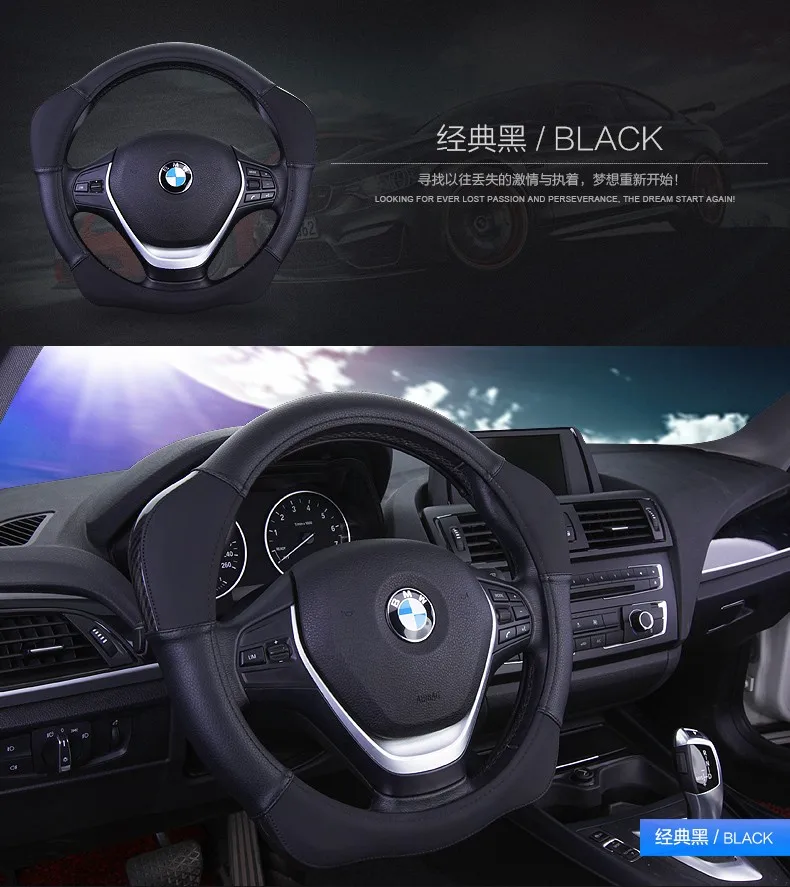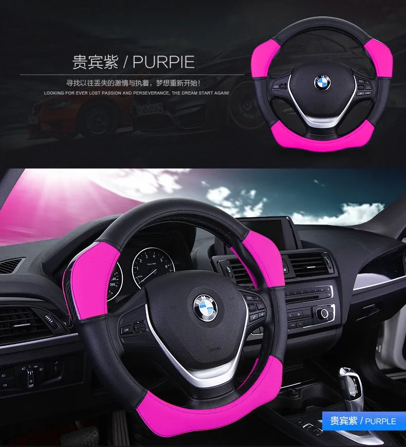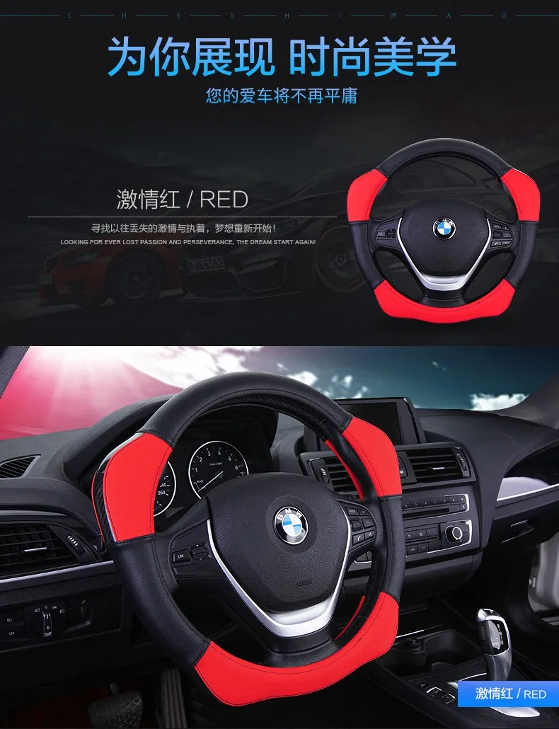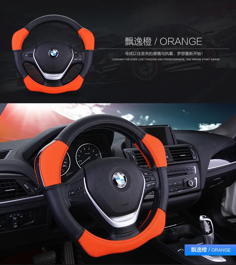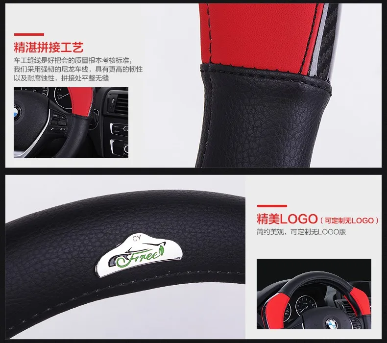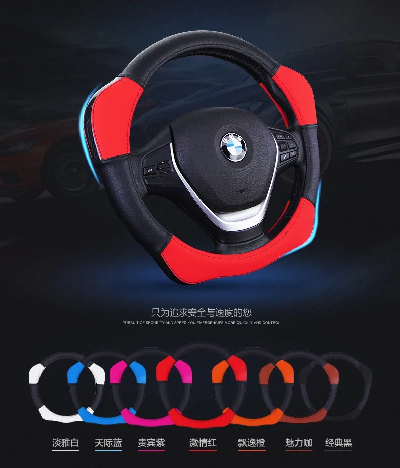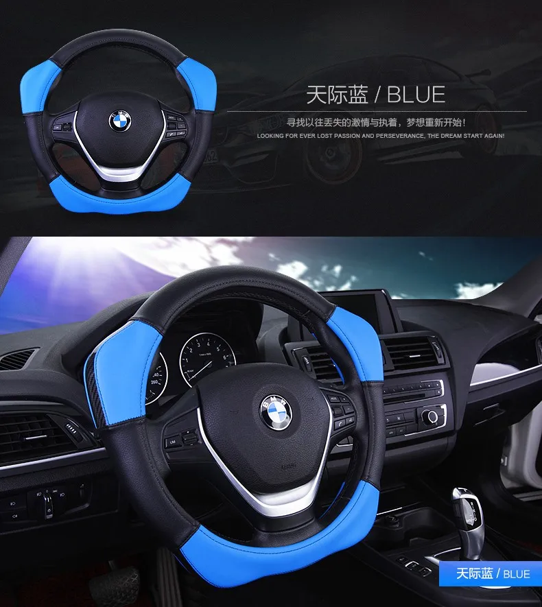 microfiber carbon fiber leather and PVC 36-40cm universal fit sport style car accessories steering wheel cover