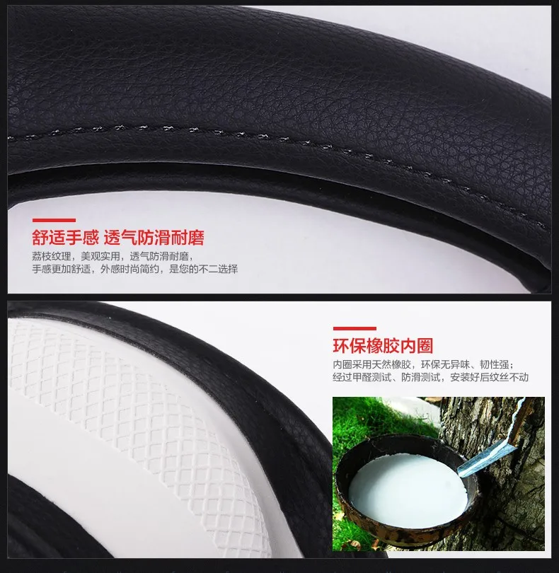 natural rubber ring microfiber leather universal fit car steering wheel cover