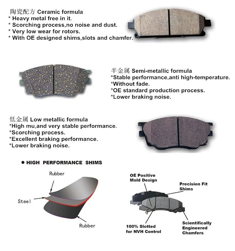 Material | Low-metallic/Semi-metallic/Ceramic |