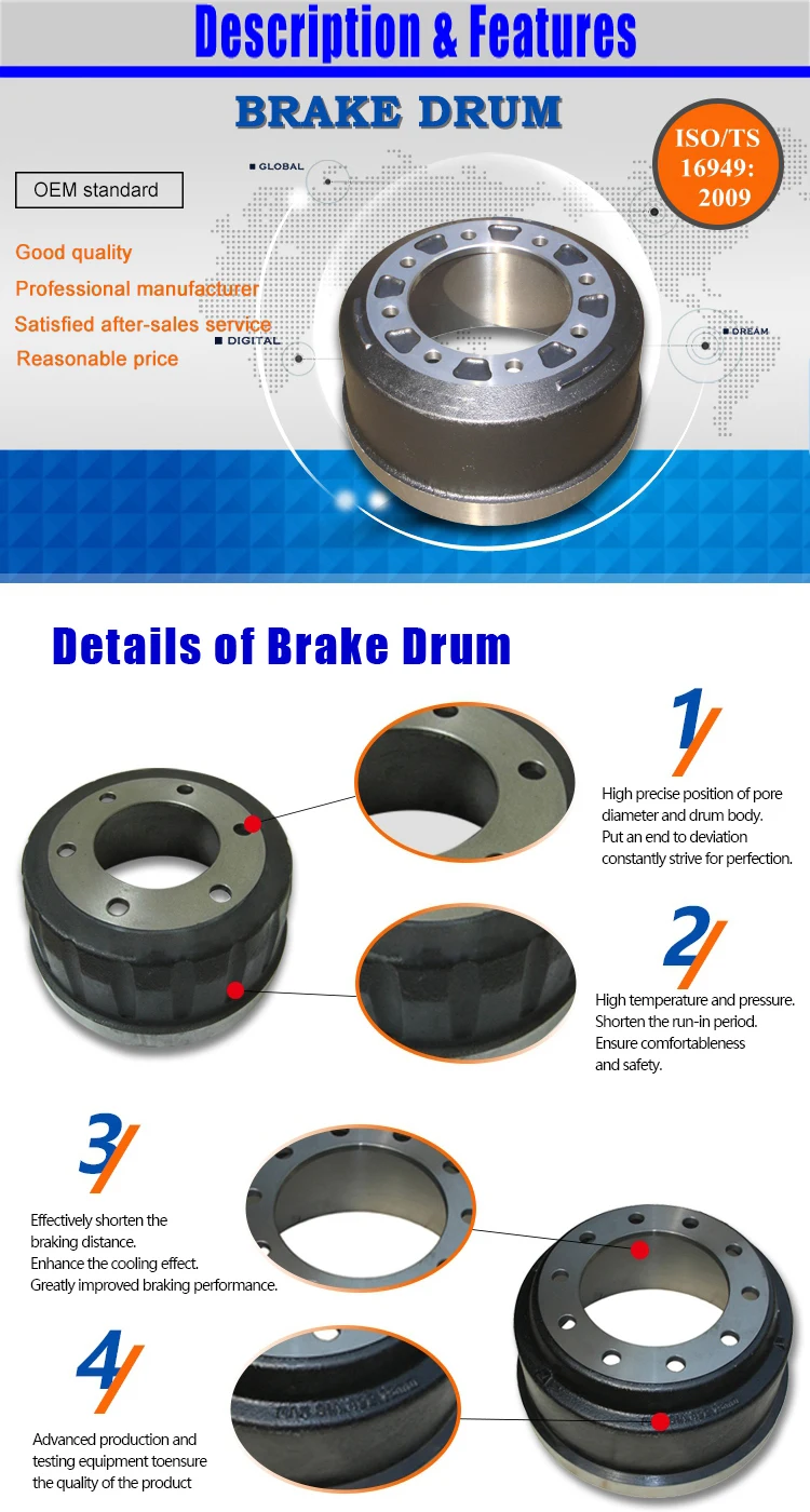 | Quality of Lorry truck brake drums | Meet or Exceed OE Manufacturer Specifications; | ||||||