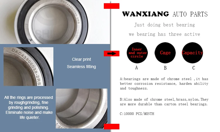 Jiaxing Wanxiang Auto Parts Co., Ltd. was founded in 2006. Specializing in the production of Auto Bearings, including wheel bearings, wheel hub bearings, transmission bearings. Products of high quality, fashionable, widely used in a variety of architecture, not only has the broad masses of the domestic sales market, but also exported to Europe and the United States.