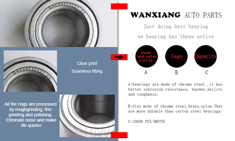 Jiaxing Wanxiang Auto Parts Co., Ltd. was founded in 2006. Specializing in the production of Auto Bearings, including wheel bearings, wheel hub bearings, transmission bearings. Products of high quality, fashionable, widely used in a variety of architecture, not only has the broad masses of the domestic sales market, but also exported to Europe and the United States.