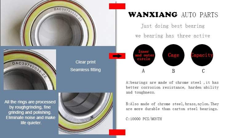 Jiaxing Wanxiang Auto Parts Co., Ltd. was founded in 2006. Specializing in the production of Auto Bearings, including wheel bearings, wheel hub bearings, transmission bearings. Products of high quality, fashionable, widely used in a variety of architecture, not only has the broad masses of the domestic sales market, but also exported to Europe and the United States.