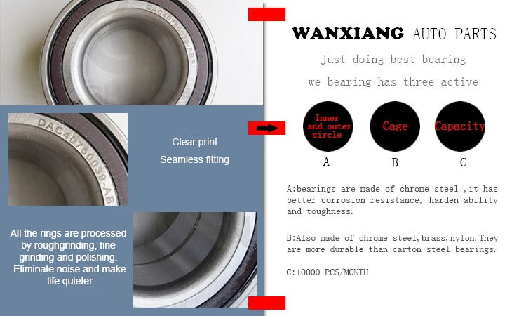 Jiaxing Wanxiang Auto Parts Co., Ltd. was founded in 2006. Specializing in the production of Auto Bearings, including wheel bearings, wheel hub bearings, transmission bearings. Products of high quality, fashionable, widely used in a variety of architecture, not only has the broad masses of the domestic sales market, but also exported to Europe and the United States.