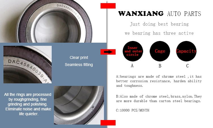 Jiaxing Wanxiang Auto Parts Co., Ltd. was founded in 2006. Specializing in the production of Auto Bearings, including wheel bearings, wheel hub bearings, transmission bearings. Products of high quality, fashionable, widely used in a variety of architecture, not only has the broad masses of the domestic sales market, but also exported to Europe and the United States.