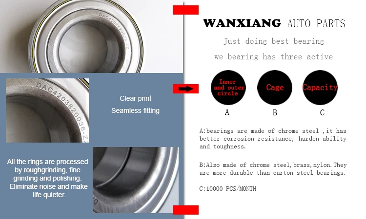 Jiaxing Wanxiang Auto Parts Co., Ltd. was founded in 2006. Specializing in the production of Auto Bearings, including wheel bearings, wheel hub bearings, transmission bearings. Products of high quality, fashionable, widely used in a variety of architecture, not only has the broad masses of the domestic sales market, but also exported to Europe and the United States.