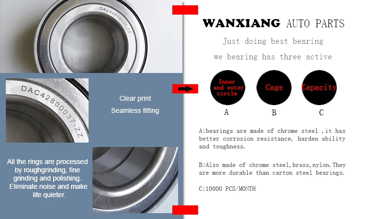 Jiaxing Wanxiang Auto Parts Co., Ltd. was founded in 2006. Specializing in the production of Auto Bearings, including wheel bearings, wheel hub bearings, transmission bearings. Products of high quality, fashionable, widely used in a variety of architecture, not only has the broad masses of the domestic sales market, but also exported to Europe and the United States.