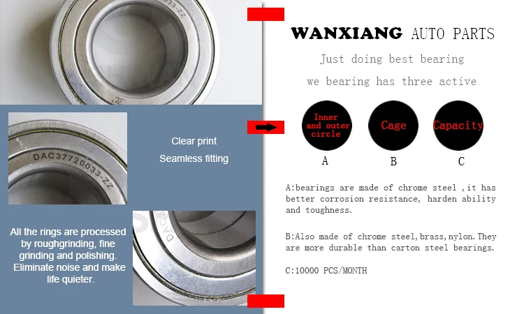 Jiaxing Wanxiang Auto Parts Co., Ltd. was founded in 2006. Specializing in the production of Auto Bearings, including wheel bearings, wheel hub bearings, transmission bearings. Products of high quality, fashionable, widely used in a variety of architecture, not only has the broad masses of the domestic sales market, but also exported to Europe and the United States.