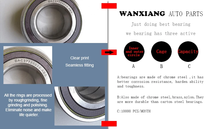 Jiaxing Wanxiang Auto Parts Co., Ltd. was founded in 2006. Specializing in the production of Auto Bearings, including wheel bearings, wheel hub bearings, transmission bearings. Products of high quality, fashionable, widely used in a variety of architecture, not only has the broad masses of the domestic sales market, but also exported to Europe and the United States.