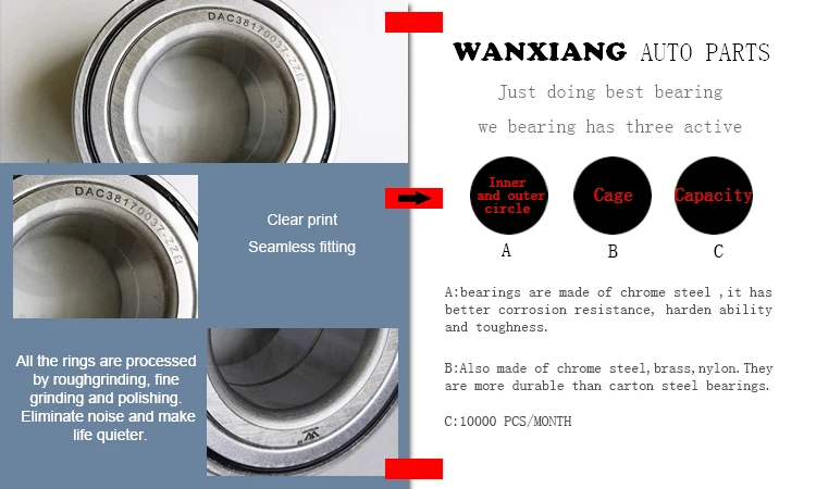 Jiaxing Wanxiang Auto Parts Co., Ltd. was founded in 2006. Specializing in the production of Auto Bearings, including wheel bearings, wheel hub bearings, transmission bearings. Products of high quality, fashionable, widely used in a variety of architecture, not only has the broad masses of the domestic sales market, but also exported to Europe and the United States.