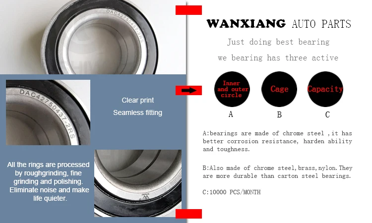 Jiaxing Wanxiang Auto Parts Co., Ltd. was founded in 2006. Specializing in the production of Auto Bearings, including wheel bearings, wheel hub bearings, transmission bearings. Products of high quality, fashionable, widely used in a variety of architecture, not only has the broad masses of the domestic sales market, but also exported to Europe and the United States.
