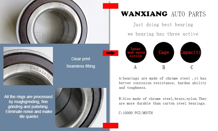 Jiaxing Wanxiang Auto Parts Co., Ltd. was founded in 2006. Specializing in the production of Auto Bearings, including wheel bearings, wheel hub bearings, transmission bearings. Products of high quality, fashionable, widely used in a variety of architecture, not only has the broad masses of the domestic sales market, but also exported to Europe and the United States.