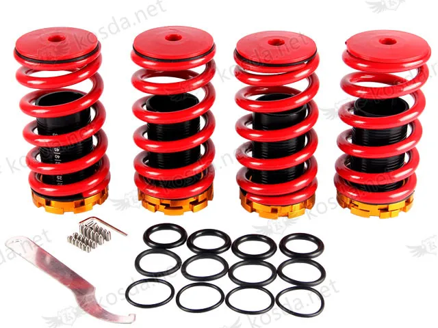 Brand new adjustable coilover sleeve.Made of high quality forged aluminum.Come with 4 pieces coilover (two for front,two for rear),o-ring spacers,wrench and hardware for easy installing.