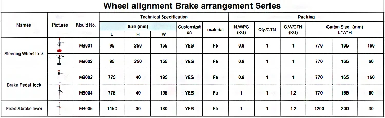 Steering wheel holder,Brake pedal depressor and Stand column etc,which extensive enough to meet the needs of all of wheel alignment manufacturer.