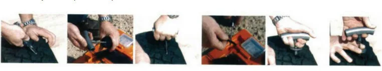 3. Put 2-3 drops of the rubber cement on the tip of the reamer and insert the reamer into the puncture. Work the reamer in and   out while twisting to clean and prep the puncture and apply the cement. This process will also enlarge the hole to that the           plug will fit through; because of this the first couple of insertions can be difficult. Repeat this process 2-3 times to make sure t     the puncture is clean and that there is enough cement in the wound.