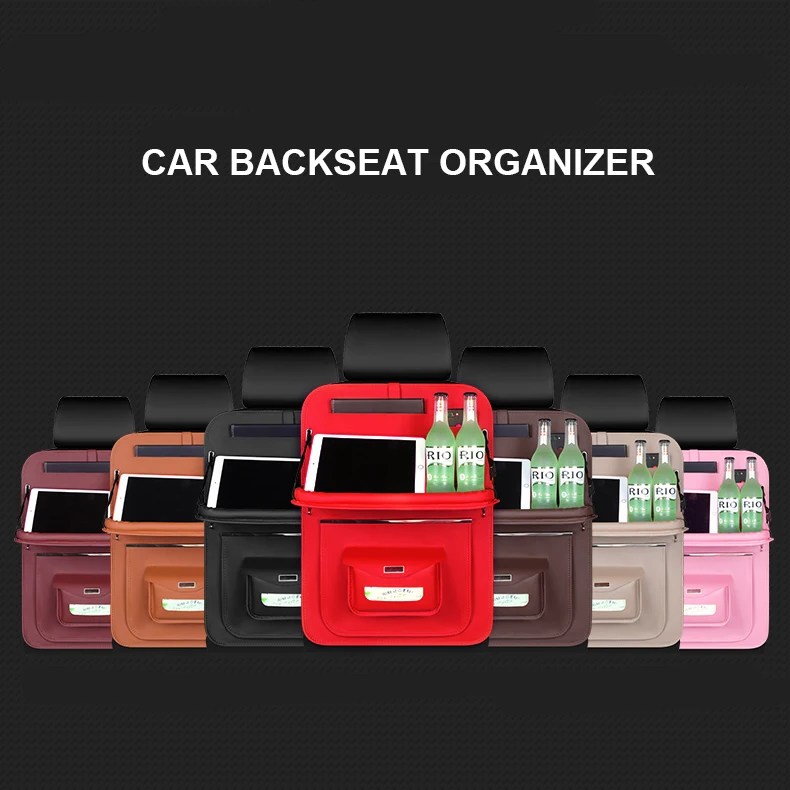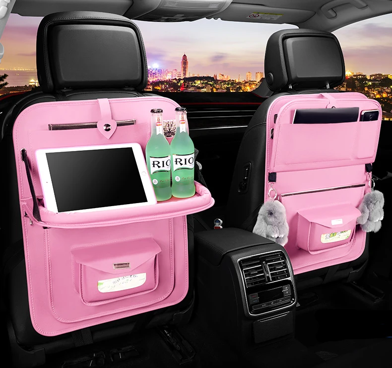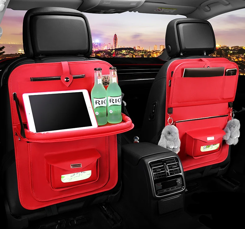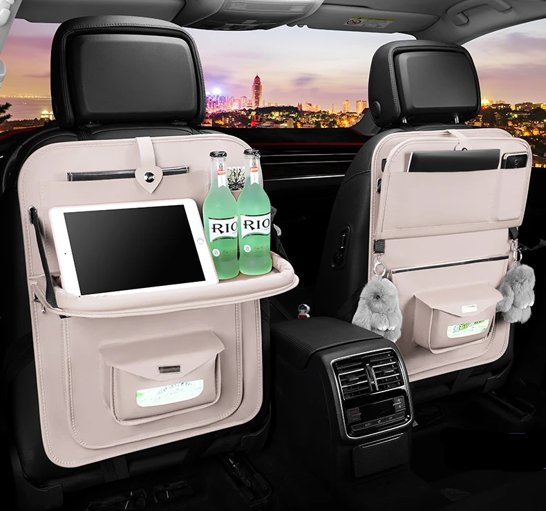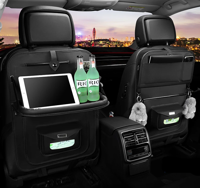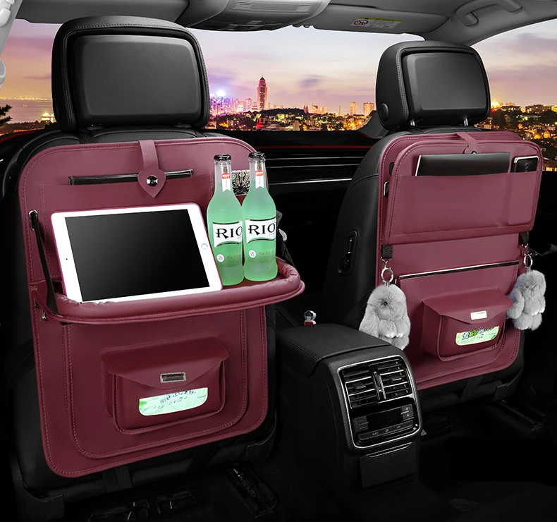 Good quality direct factory Leather Car Backseat Hanging Travel Organiser With Table Holder Auto Organizer