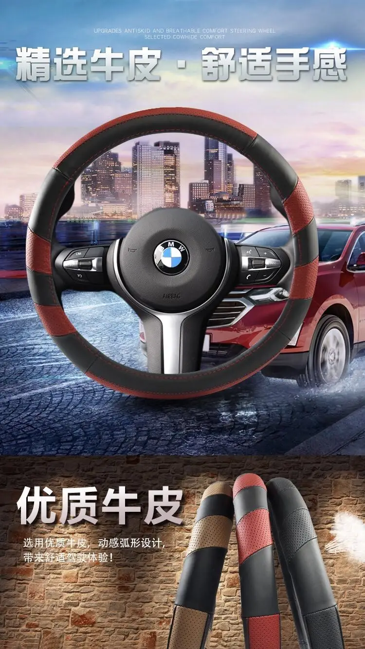 Factory universal fashionable comfortable genuine leather pu leather steering wheel covers
