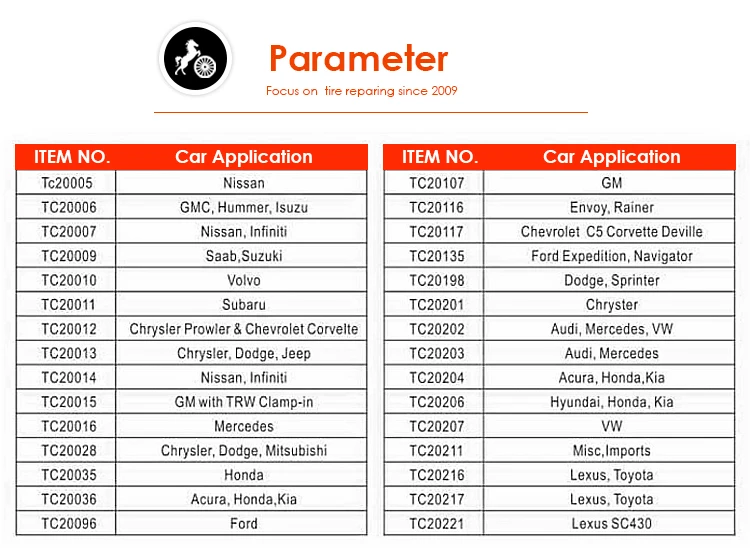 Your location:Home > Ningbo Hi-Tech Zone Tongcheng Auto Parts Co., Ltd. > 定制车辆模型TPMS服务套件与螺母工具