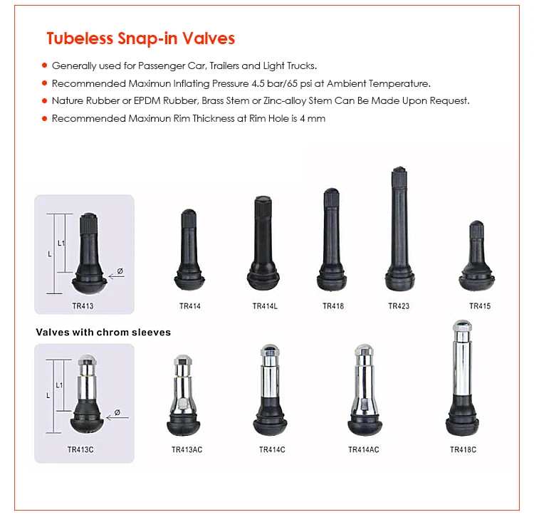 Your location:Home > Ningbo Hi-Tech Zone Tongcheng Auto Parts Co., Ltd. > TR414C Tubeless Snap in Tyre Valves with Chrom Sleeves
