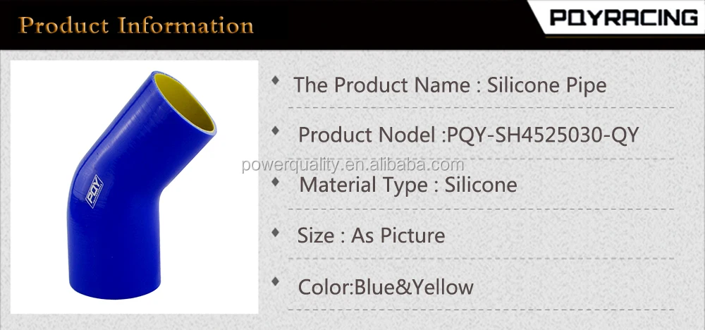 PQY - 2.5"-3" 63mm-76mm 45 Degree Elbow Reducer Silicone Hose Pipe Turbo Intake Blue or Black with inner yellow PQY-SH4525030-QY