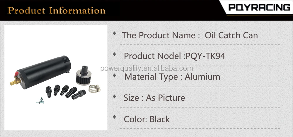 PQY - Universal Billet Aluminum Baffled 2-port Oil Catch Can Tank with Breather Filter Engine Mini Oil Separator PQY-TK94