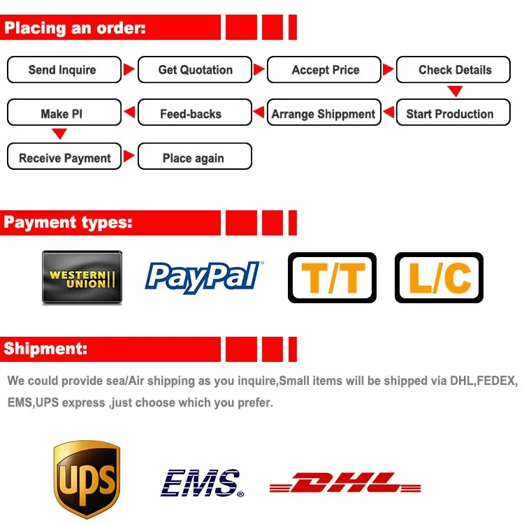 We could provide EXW,FOB,CIF,CFR ,DTD etc. (Except EXW terms, please kindly provide us your detailed address with zip code or closed port ,thanks )