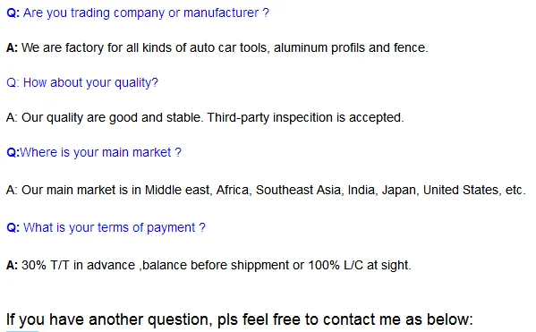 Inspection | Factory inspection certificate will be issued for every shipments. Third party inspection is accepted. |