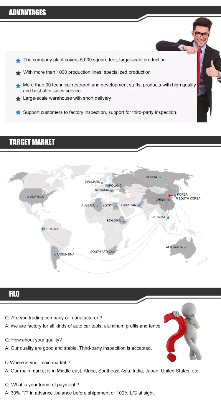 Shandong Ganhong Auto Parts Co.,Ltd is located in Weifang City, the Capital of the Kites. We are a professional manufacturer of Auto tools, Stamping Parts and Aluminum parts with modern manufacturing and texting lines for more than 20 years. Our main products include Impact Socket, Wrench, Warning Triangle, lifting jack, Aluminum guard bar and so on.