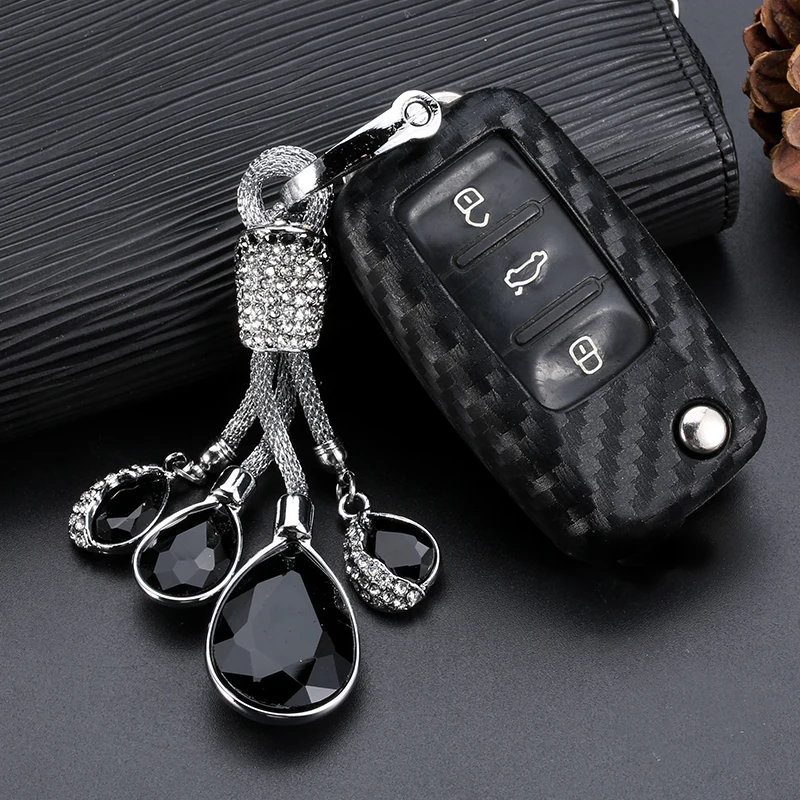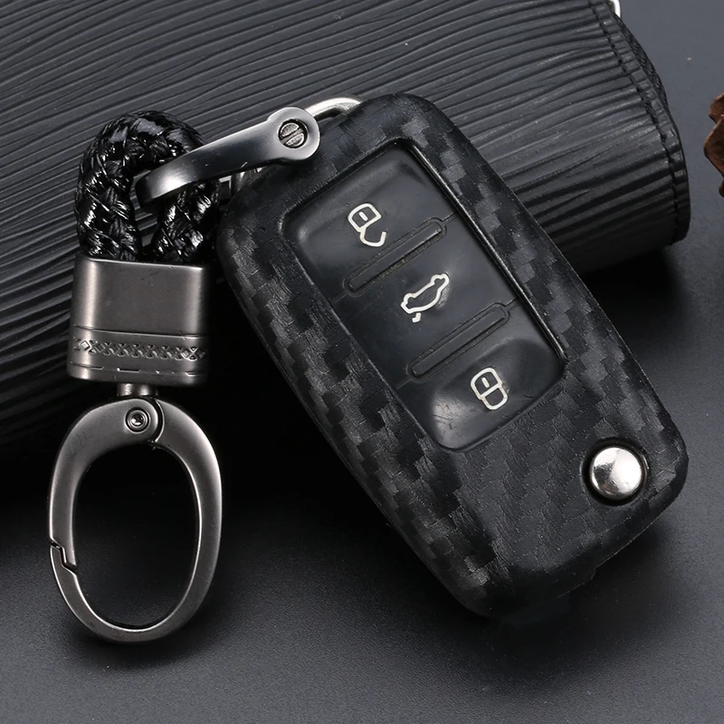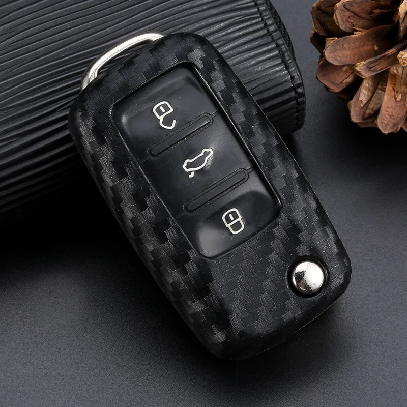 Carbon Car Remote Flip Key Fob Shell Cover Case For VW Golf 4 5 6 Bora Jetta POLO Passat Touareg Vento Voyage W12 Octavia SEAT