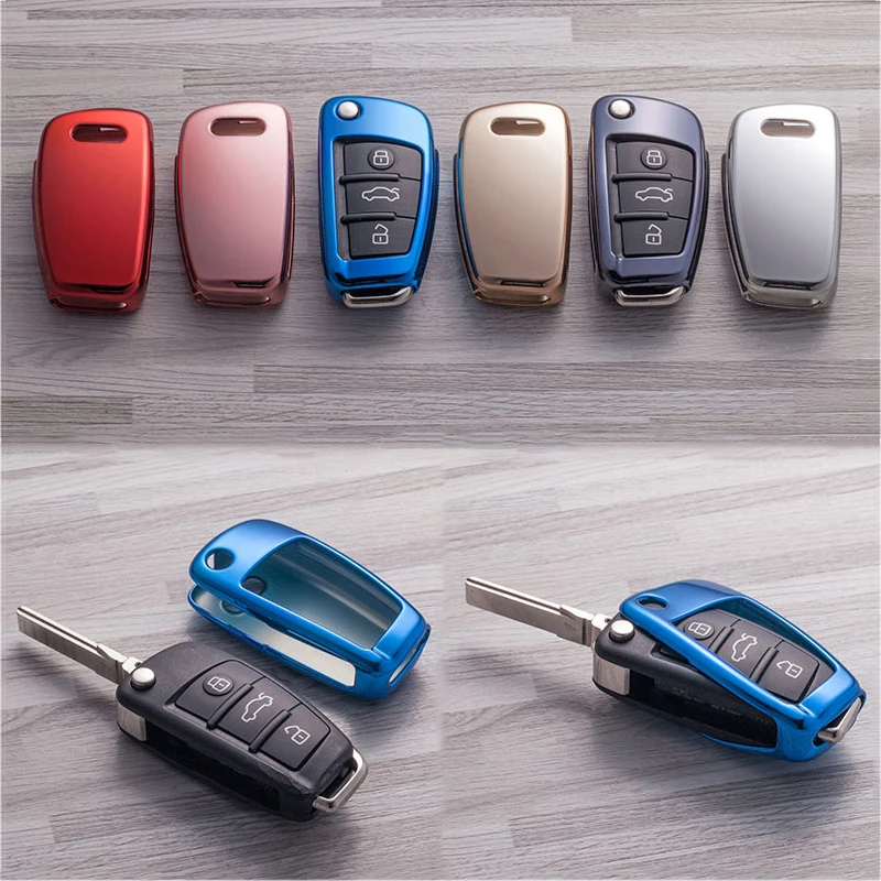 Classic Smart Key Cover soft TPU Car Key Protection Case For Audi Q7 A3 A4 A6 TT R8 folding keys shell