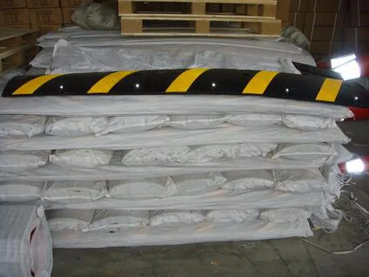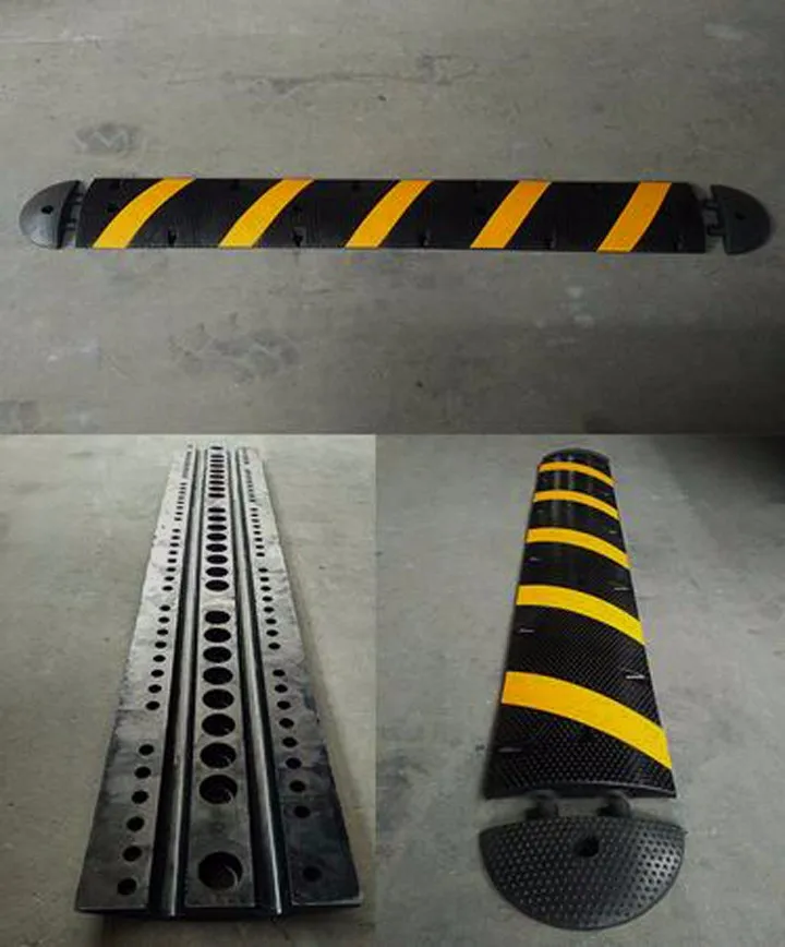 3.For A type road speed bump,use a steel bar or PVC pepe to link them up from the middle holes in order to strengthen the power of force resistance.