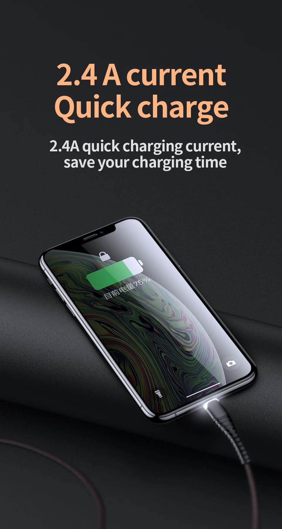 Feature | 1. Built-in power led light inside interface, solve the problem of finding cable in the dark 2. 2.4A current fast charge, saving charging time 3. aluminium alloy shell avoid oxidation 4. braided wire body- strong and durable |