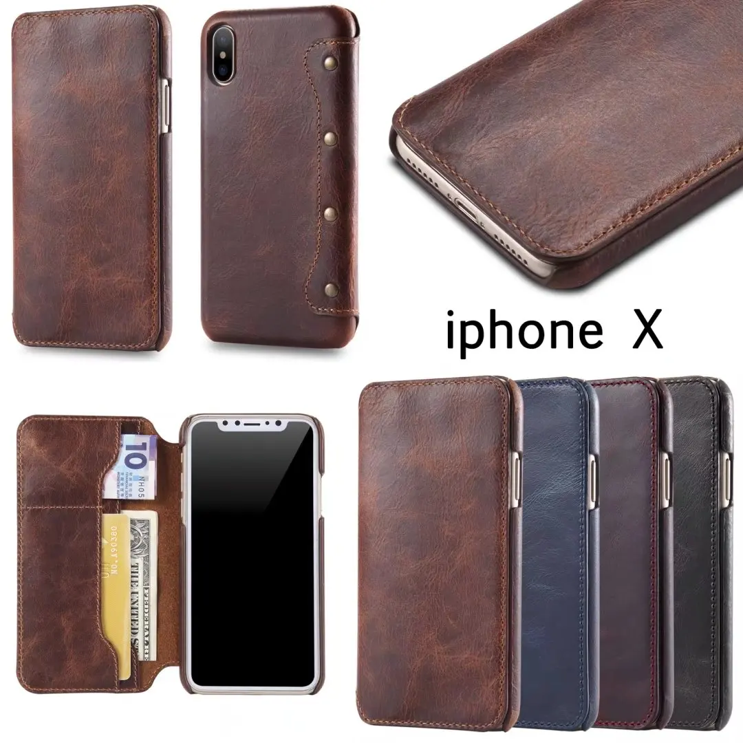 Item name | Vintage Wax genuine cow shockproof flip leather phone case for iPhoneX with wallet & card holders |