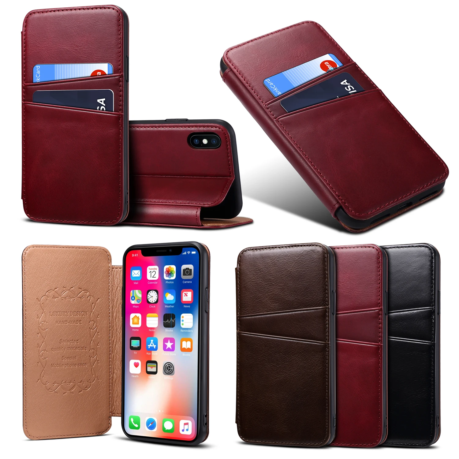 Item name | Ultra-thin glossy shockproof flip genuine cow leather phone case for iPhone X with front card slots and flip stand |